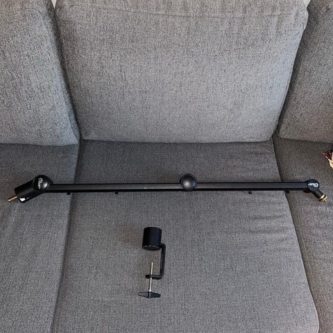 Stativet kan praktisk pakkes sammen, og mikrofonen demonteres i tre lett bærbare deler. Stativet er også veldig stødig, og står godt både på skrivebordet, myke overflater, eller på gulv.