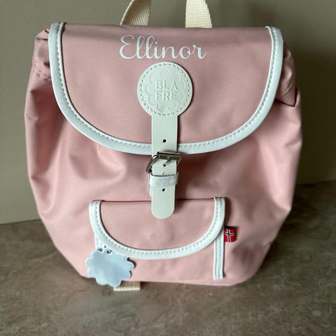 Ny Blafre ryggsekk i fargen rød. Rommer 6 liter. Har lapp på. Er ein feil med feste, men har forsåvidt ingen betydning, då den holder igjen av ein magnetisk knapp.