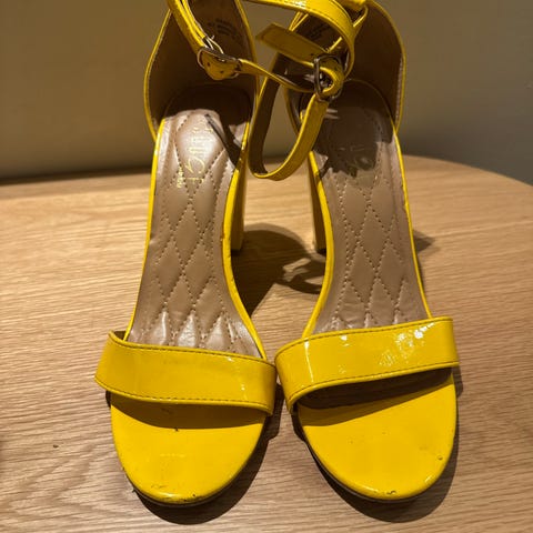 Kule hæler fra H&M i neonfarge med stropper over tærne og ankelen, og glidelås bak. Ingen skader 💛💚