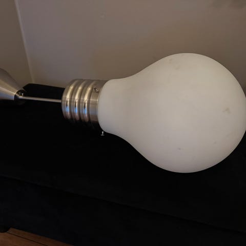 Elegant taklampe i sølvfarge. Opphenget er fjærbelastet slik at lampen enkelt kan trekkes ned eller dyttes opp i riktig høyde avhengig av situasjon og ønsket lys.