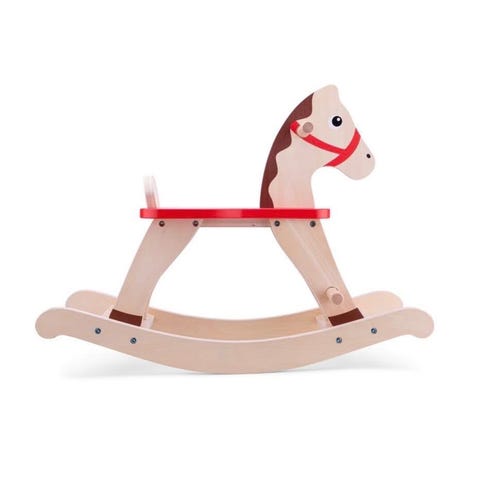 Tidløs Gyngehest i Massivt Tre med Ekte Mane og Hale