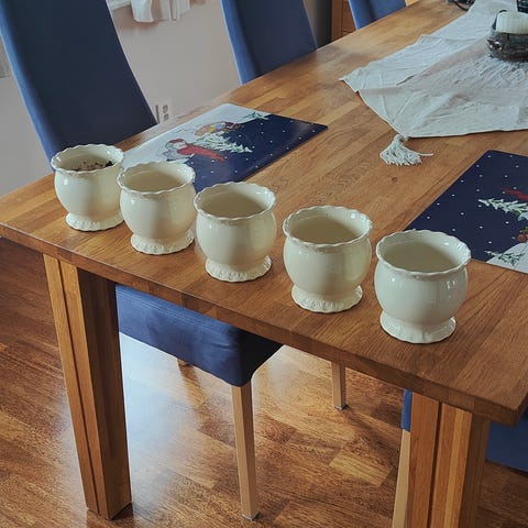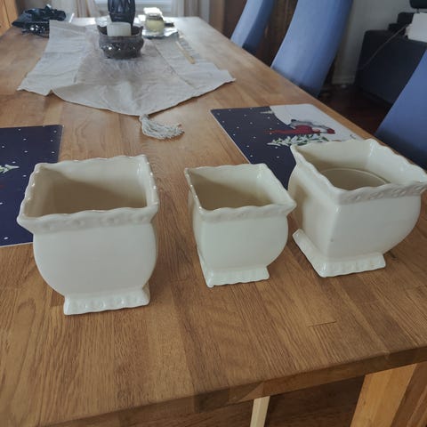 Blomster potter på fat, pottene sitter fast,hel og fin,lite brukt, ingen bud
