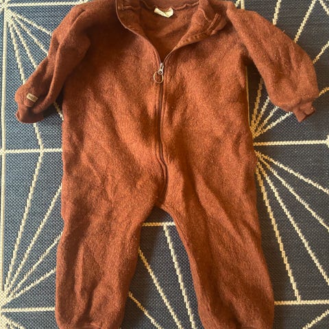 Pent brukt ulldress fra name it. Brukt til soving i vogn. Hender og føtter kan pakkes inn. Fotposer i ull med stramming fra Alwero.