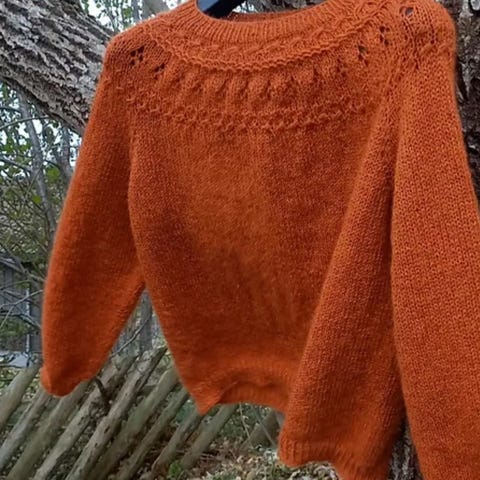 Hjemmestrikket genser i flette-/strukturmønster – strikket i KOS fra Sandnes Garn