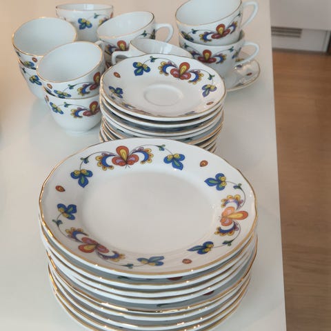 8 kaffeskåler a kr 20,- = kr 140,- (En med lite hakk, gratis)