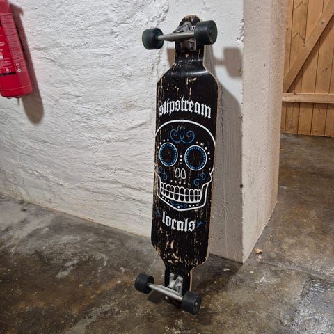 Selger et originalt Earthship longboard fra Ashton Howard Signature Series – et visuelt slående og funksjonelt brett for cruising, carving eller som dekor.