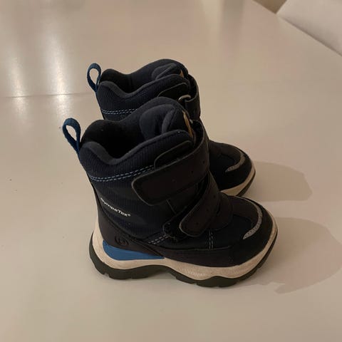 Skoene er svarte med blå lisser og har glidelås på siden for enkel av- og påkledning. Myk og fleksibel såle som gir god komfort for små føtter – perfekt til både hverdag og barnehage/skole.