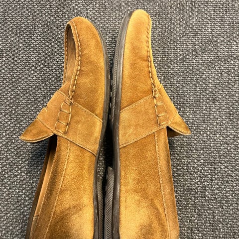 Selger et par helt nye Kadiman mokkasiner i semsket brukt stoff.