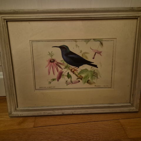 Takket være en bred ramme kan bildet ikke bare henges på veggen, men også plasseres på en hylle.