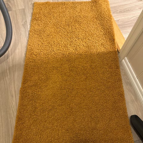 Brukt på kontor, vasket i vaskemaskin derfor har den falmet litt bak.