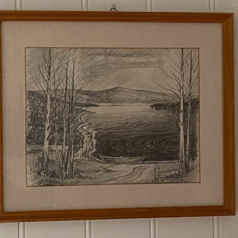 Innrammet blyanttegning av Per R. Einbu (1918-2010)