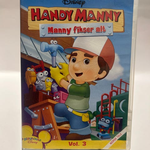 Disney Handy Manny DVD Vol. 3. Denne DVD-en inneholder episoder fra den populære barne-TV-serien Handy Manny. Serien følger Manny og hans verktøy når de løser ulike problemer i byen. Perfekt for barn som liker å lære og utforske gjennom morsomme og lærerike historier.