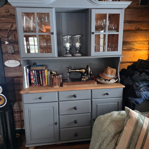 Furuskap med glass blåmalt