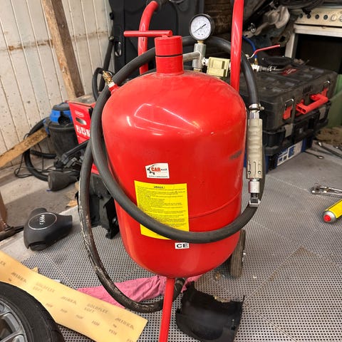 Trykksprøyte til avfetting, ugressmiddel, vaskemiddel og lignende tynnflytende. Den er fra Jula. En tilsvarende sprøyte med 5 liter koster nå 149 kroner. Jeg er ferdig med prosjektet.