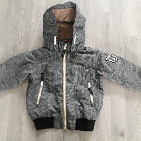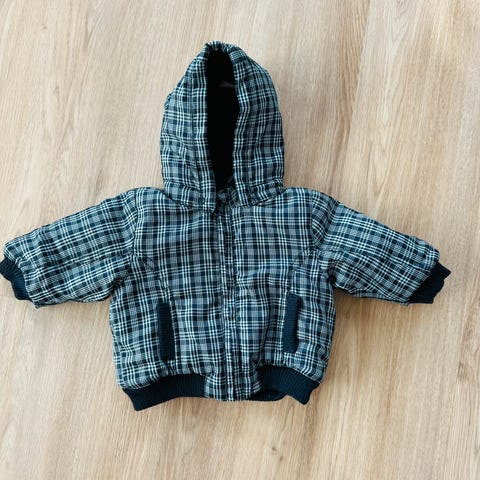 SORT / HVIT RUTET JAKKE MED AVTAGBAR HETTE STR. 92