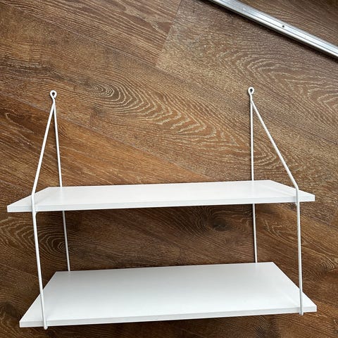 Størrelsen over er den største hyllen mens liten hylle er 30cm bred og 15cm høy