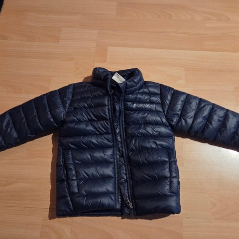 En Didriksons jakke i mørkeblått, denne er størrelse 80, men den er veldig stor i størrelsen og har også passet frem til fire års alder.