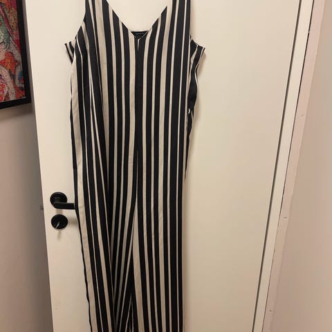 Nydelig brunfarge på denne jumpsuiten . Vil si str M ....men er vaffelsøm i overdelen kan justeres noe. Kjøpt som en del av en klespakke men denne passet ikke. Kjennes ut som bomull.