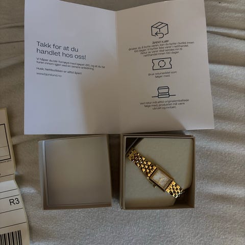 Selger et sett med klokke og armbånd. Aldri blitt brukt, prisen sitter fremdeles på.