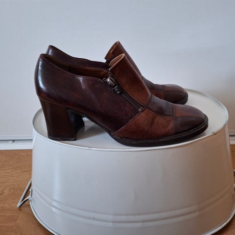 Pent og for veldig lenge siden brukte platåsko med 10 cm høye hæler selges /gi bud