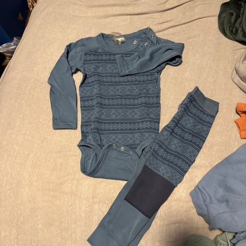 Bl.a joggesett fra Nike, body/bukse sett fra Gullkorn, en del reflex ull-bodyer samt vanlige bodyer.