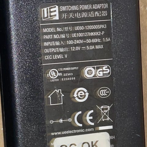 RS AC ADAPTER Lader RS-05/12-S335 12V/5A
