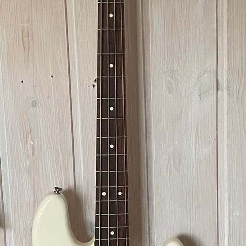 Selger et hvitt plekterbrett til Fender Jazz Bass, som kom originalt fra en Fender Player II Jazz Bass.