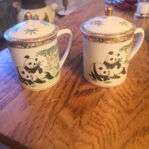 Pandakopp som er svart og sovende i skapet/med kaldt innhold og «våkner» og blir hvit i fargen når innholdet i koppen er varmt. Nesten ubrukt uten bruksmerker.