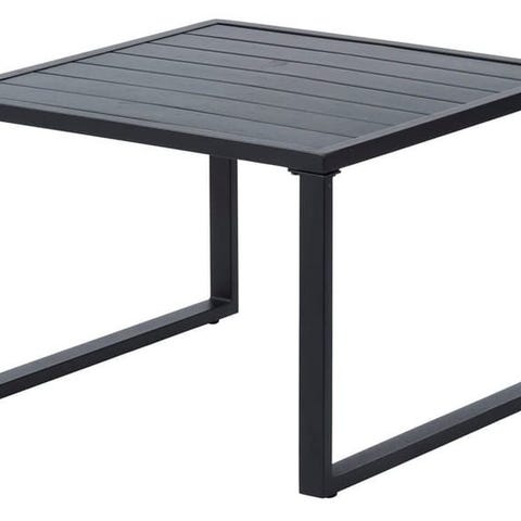 Hagebord med glass plate og stålbein. Helt og fint. Litt falmet på understellet. Høyde 73. Bredde 105. Lengde 180