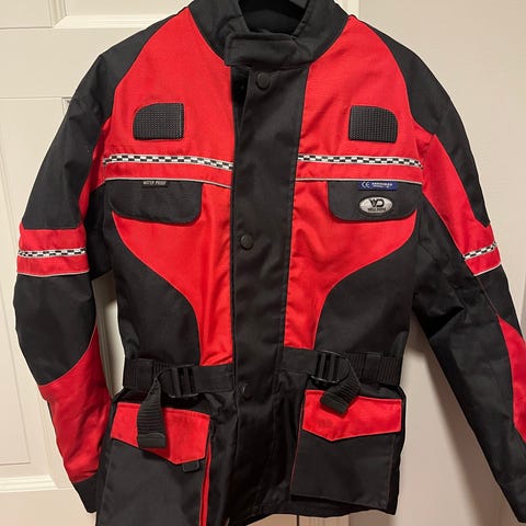 Pent brukt MC Jakke /Bukse for Dame. Størrelse M i Jakke og Strørrelse 46 Bukse ( kort modell i ben). Selges samlet for 1500,- Brukt noen få ganger . Jeg er 163 cm høy og buksen passer i lengden. Må hentes