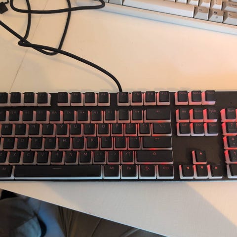 Jeg selger denne tastaturet siden jeg ødelagte venstre ALT-tasten ved uhell når jeg prøvde å modde den. Den har en veldig "thocky" lyd, og alle de andre tastene virker greit, bare ikke ALT.