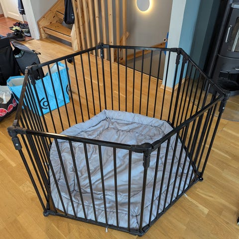 Underlag til babygrind selges.