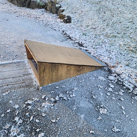 Freshpark ramper. Montert rekkverk på toppen for og ikke tippe over. Fjernes enkelt med skruer.