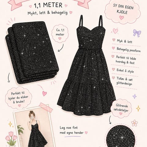 Stretch Jersey – Sort med Sølvglitter ✨