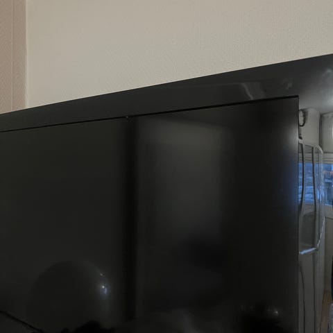 Den har defekt fjernkontroll men kan slås på og styres på selve tvn. Ny kontroll kan fås for en billig penge.