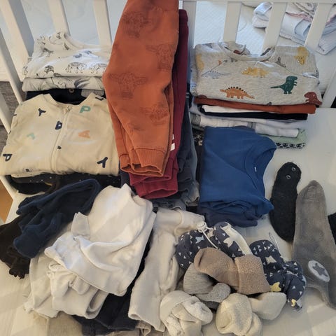 Selger babytøy samlet i én pakke! For alder 3–6 måneder, alt i veldig god stand, mange leker, nye siklesmekker, praktiske dresser, samt noen bodyer og bukser. Kjøper betaler frakt. Alt for 200 kroner.