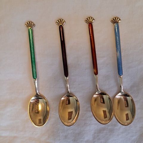 Eldre norsk sølvskjeer emaljerte