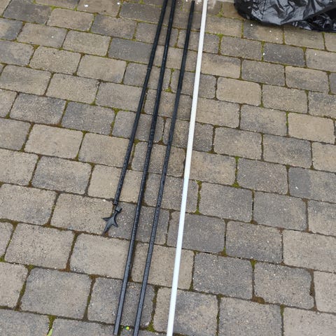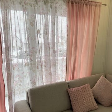 Den andre er 160 cm. Uttrekkbar til 270 cm, men tipper 240 cm gir svai på litt tungre gardiner.