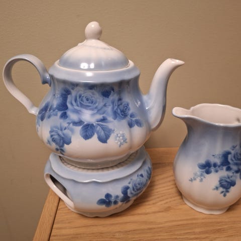 Nydelig kanne Selges billig pga kokt tørr engang men ingen skade som jeg kan se Hatt den mest til pynt selv😊Nydelig blåfarge
