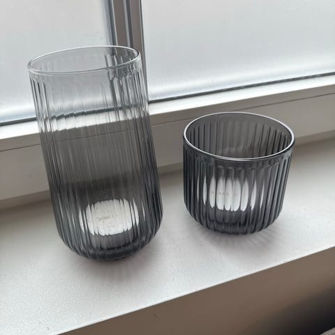 Fikk disse glassene i gave, men hadde to fra før. Det er egentlig drikkeglass, men kan også brukes som telysholder. Fra merket Muubs.