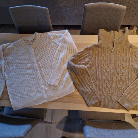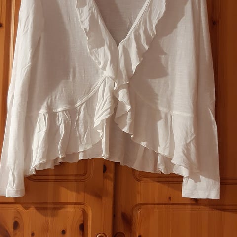 Selger ei pen, tynn jakke. Fin fasong med litt markering i midjen og nydelig mønster rundt halsen og armene. Kanskje litt mer i retning av eggeskallsfarge enn helt hvit. Såvidt brukt.