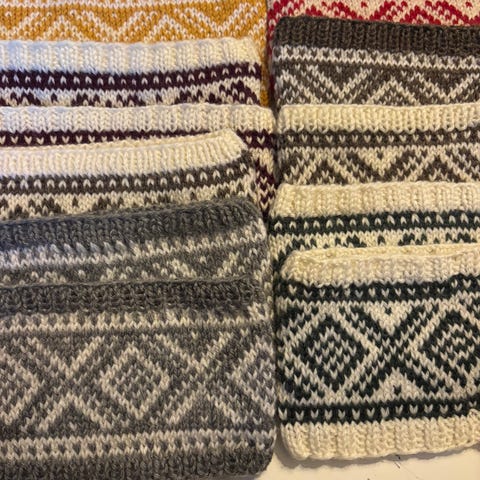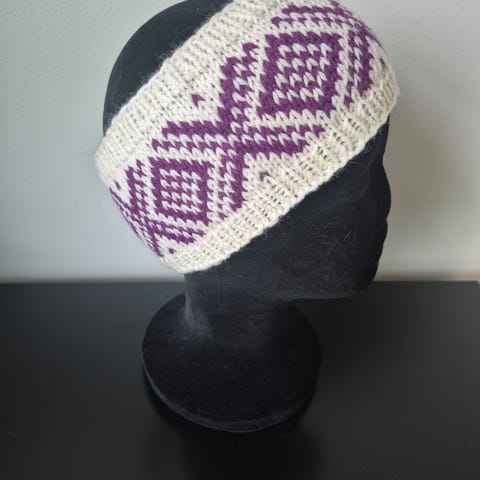Nystrikkede Marius pannebånd str M (og et i S) selges for 80,-/stk. Strikket i merinoull.