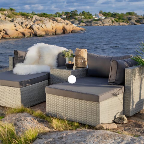Holdbar og luftig: Flettet sete i pustende polyrattan.