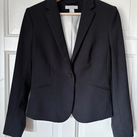 Fin blazer i marineblått, som passer godt til bruk med både bukser, skjørt og kjoler.