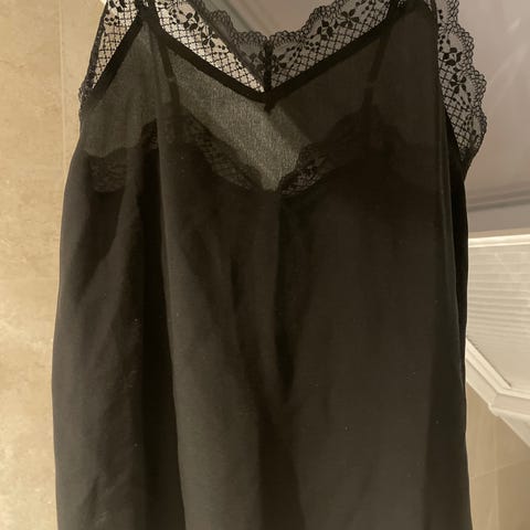 Lekker svart boho blondetopp/kort kjole med regulerbare spaghetti stropper, str M