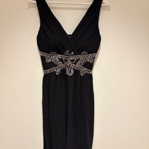 Perfekt til bryllup, julebord, gallamiddag, skoleball eller andre formelle anledninger. Stoffet faller fint og gir en feminin og elegant silhuett.