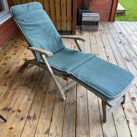 Helt ny justerbar dekkstol i eske selges. Den har bare vært tatt ut av esken. Skulle brukes på et arrangement som ble avlyst.