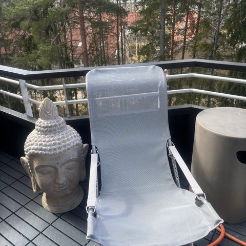 The textilene seat of the chair is well-ventilated, dries quickly, and is easy to clean.