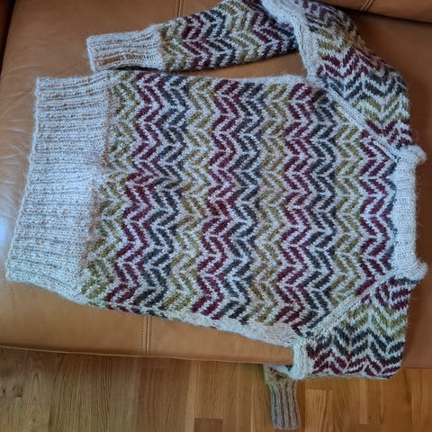 Genser popcorn rosa og flerfarget blå/grønn selges i egne annonser.