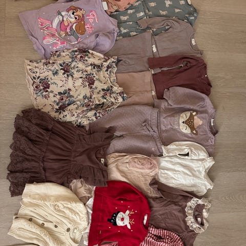 Klespakke med klær i str 80. Alle klærne er pent brukt av ett barn, ingem bruksmerker.